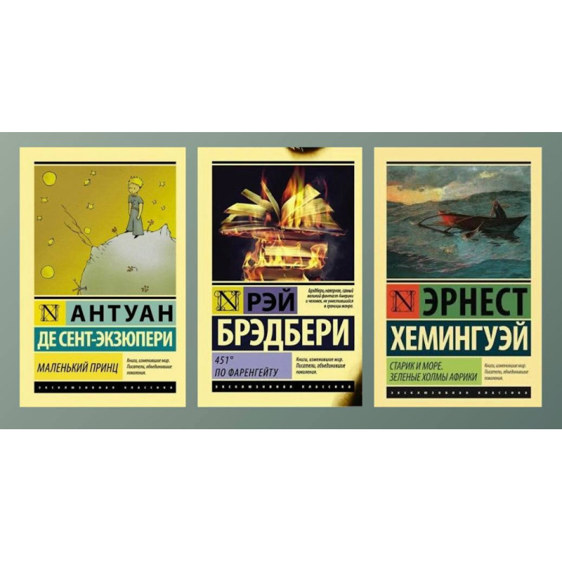 Маленький принц + 451 градус по Фаренгейту + Старик и море. Зелёные холмы Африки