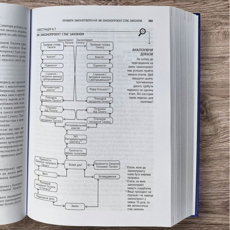 Детальний аналіз із вичерпним науковим апаратом, динамічний стиль розповіді, багатий ілюстративний матеріал із унікальними додатками про історичний розвиток американської системи влади (неадаптовані тексти Декларації про незалежність, Статей Конфедерації, Конституції з Поправками, Записки федераліста тощо) перетворюють книгу в цікавий і цінний путівник системи державного управління однієї з найбільших і найвпливовіших країн світу.