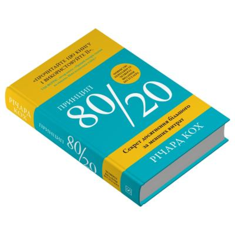 "Принцип 80/20" - це бестселер Річарда Коха, проданий мільйонними тиражами по всьому світу. Повністю оновлений і доповнений, він став ще більш потужним і незамінним. Кох пояснює, як працює цей принцип, і показує, як систематично та практично використовувати його для того, щоб значно підвищити свою ефективність і покращити кар'єру.